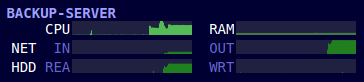 color is a CSS color (#abc or #f3f3f3 or rgb(10,20,30)) or the word default to use the default gauge color.expression is the expression defining the value.cw-min: The expression defining the level zero of the gauge. Any value below that will be discarded. The expression must be numeric and any directive will be ignored.cw-max: The expression defining the maximum value. Any value above that will be rendered as the gauge full. The expression must be numeric and any directive will be ignored.cw-log: if set to the string true, will draw the values on a log10 scale. This is particularly useful for network of hdd bandwidth gauges where the "normal activity" is 1000 times below the peak value. If you do not set the log scale, most of the activity will be squashed down to zero. In the first screenshot above, the NET IN graph would be empty and the HDD REA values would be squashed down to one pixel if not set with cw-log="true".cw-bgcolor: Set to a valid CSS color (#abc or #f3f3f3 or rgb(10,20,30)) defines the background color. Javascript needs this value as the gauge is drawn on a canvas and the stroke needs to be set to the bg color. If not set, the background color will be set to the default value of #202040.Note that hgauges can display a red vertical bar, as you can see below: